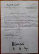 Includes a certificate of authenticity regarding Mandela's signature, loosely inserted.