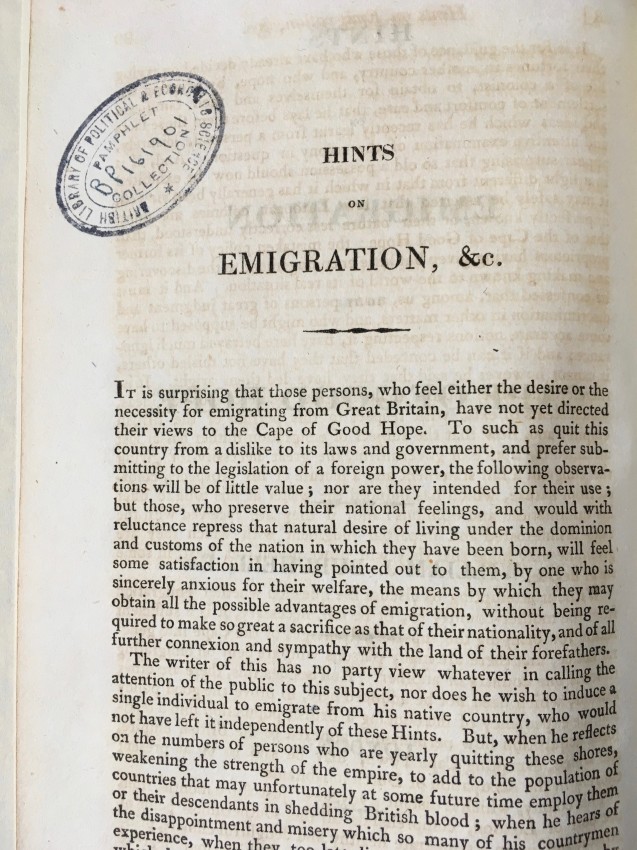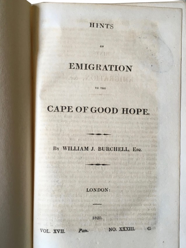 "The author recommends those who wish to emigrate from England to consider the advantages offered by the Cape of Good Hope." (Mendelssohn Vol 1, p 223).