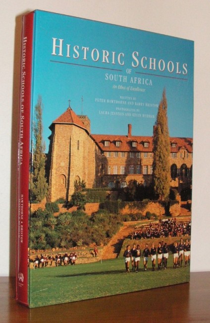 Photographs by Laura Jeannes and Kevin Rudham. 4to; original salmon-coloured cloth, with spine lettered in gilt; laminated pictorial dustwrapper and matching laminated pictorial slipcase; pp. 241 + (iv); lavishly illustrated in full colour and with some monochrome period pictures. Fine. \"Twenty-three of the most celebrated schools in South Africa appear in this prestigious book, their histories traced through the terms of their successive headmasters. The architecture of each school is discussed - a fascinating aspect of their stories, with many schools having had more than one (and some many) homes during their existence. The text celebrates the achievements of the schools\' outstanding pupils, following them through their schooldays and noting their later contributions to society - Rhodes Scholars, Nobel prizewinners, international sportsmen, politicians and war heroes, and other Old Boys who have achieved prominence, at home and abroad. An outstanding portfolio of original full-colour photographs shows the schools in their environments, highlighting various aspects of the architecture and day-to-day school life. These are juxtaposed with black-and-white archival pictures recalling the schools\' historic eras and the personalities of bygone days. Each chapter opens with a spectacular double-page full-colour photograph depicting the school at its finest. The selected schools include Dale College, the Diocesan College (Bishops), Durban High School, Glenwood Boys\' High School, Grey College in Bloemfontein, Grey High School in Port Elizabeth, Hilton College, Jeppe High School for Boys, Kimberley Boys\' High School, King Edward VII School, Kingswood College, Maritzburg College, Michaelhouse, Paul Roos Gymnasium, Pretoria Boys\' High School, St Patrick\'s Christian Brothers\' College, Queen\'s College, Rondebosch Boys\' High School, Selborne College, the South African College Schools, St Andrew\'s College, St John\'s College and Wynberg Boys\' High School.\"