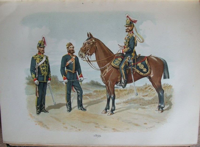 In addition to this there have been inserted coloured sketches of its past and present uniforms and former guidons, as well as some portraits of the colonels and comanding officers from time to time.