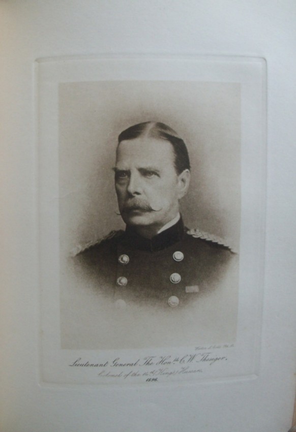 Original 1/4 bound pale lemon leather with dark blue boards with Regimental vignette in gilt to front board, with gilt lettering and design to spine.