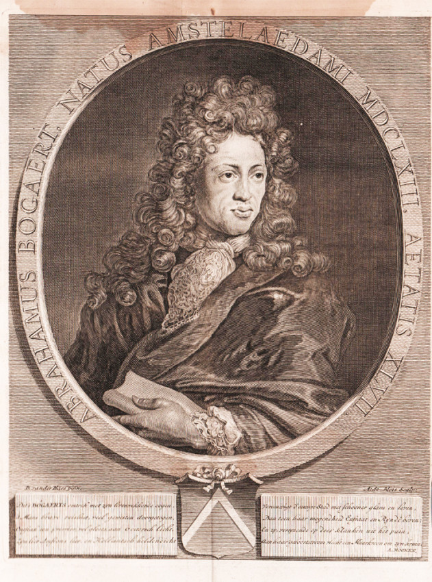 First edition: xvi, 604 pages, half title page and added engraved title page, folded engraved portrait of Bogaert opposite page 1, 14 engraved plates – some folded, water stains at the top of the preliminary pages, quarter leather with matching marbled boards which are scuffed and worn, a good copy.