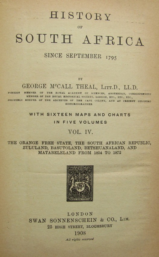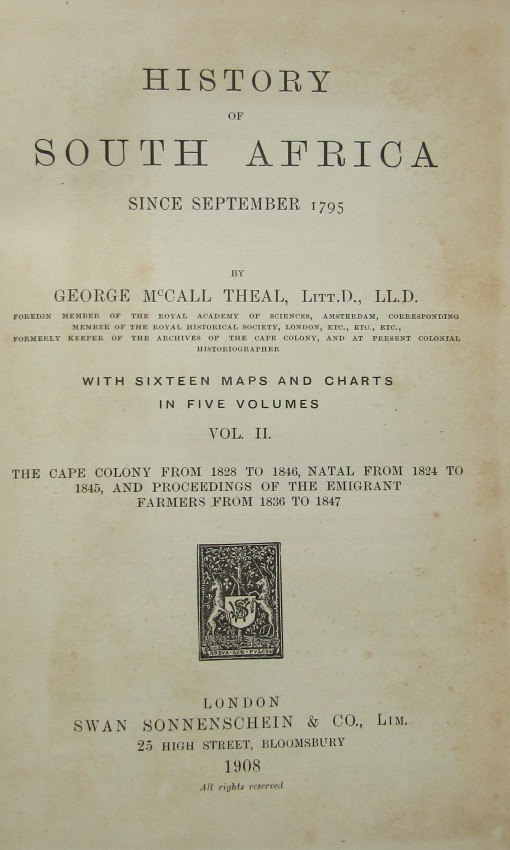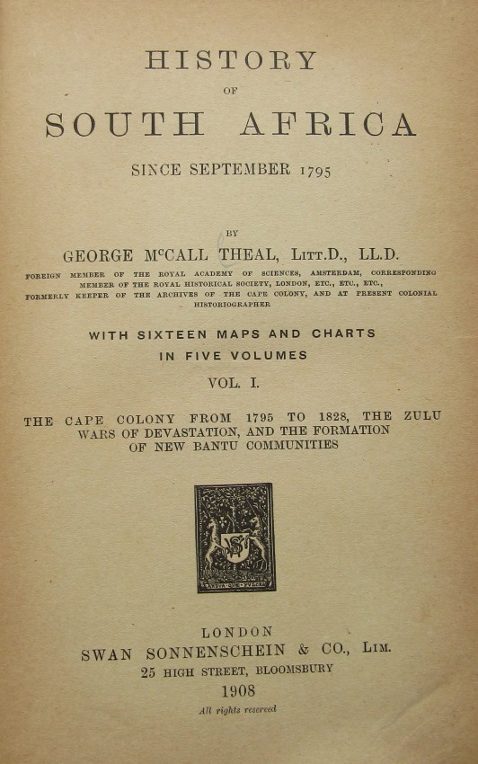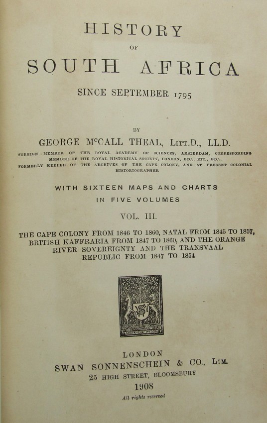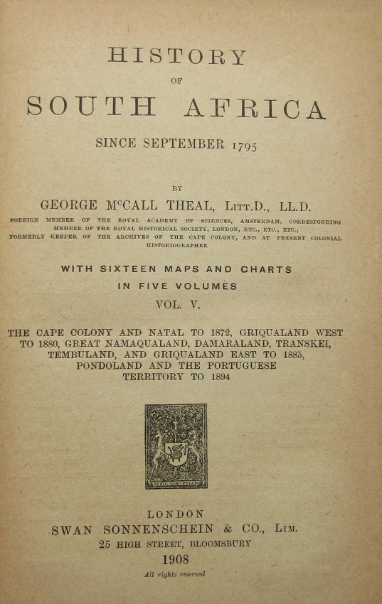 5 volumes. First edition 1908. Comprehensive History of South Africa.