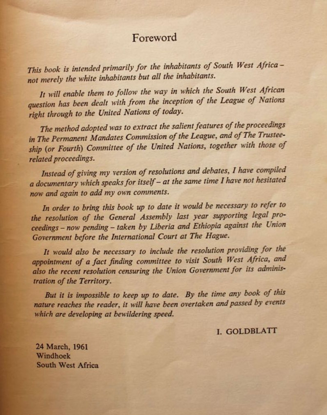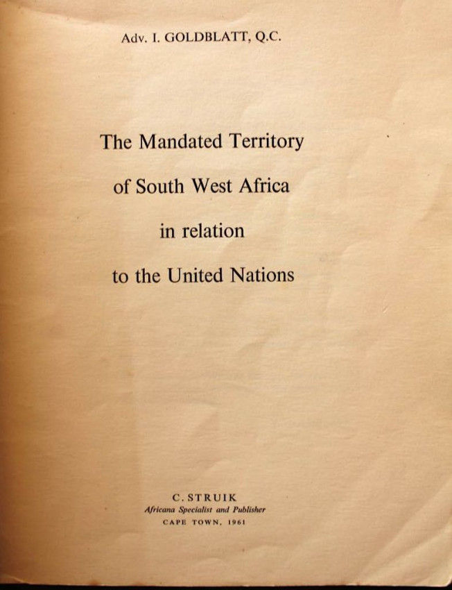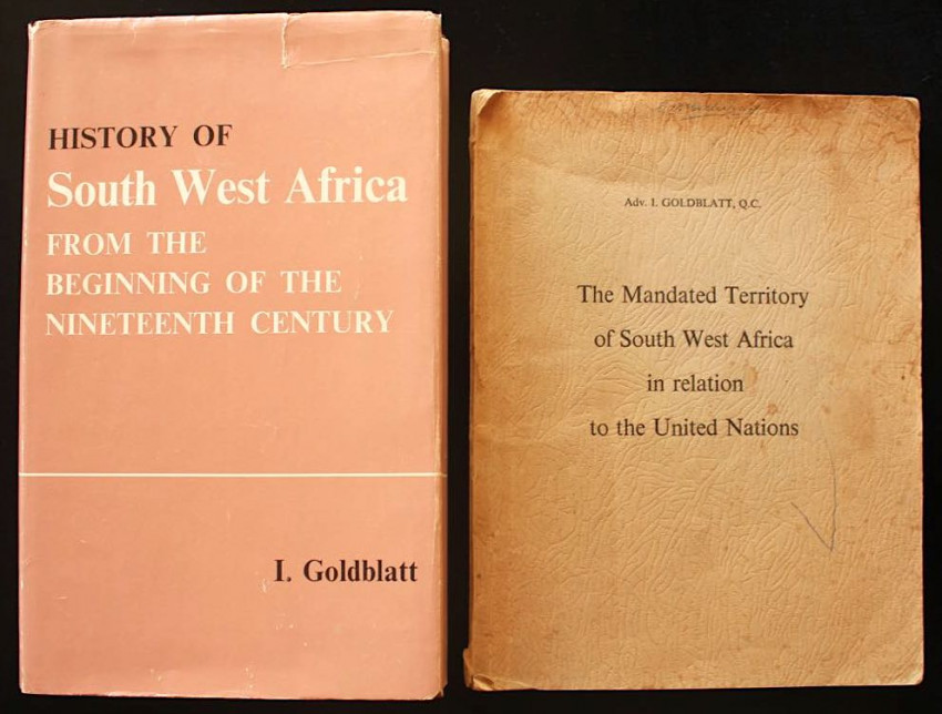 INCLUDED in this lot is a scarce copy of Goldblatt's earlier work The Mandated Territory of South West Africa in relation to the United Nations, published in Cape Town by Struik, 1961.