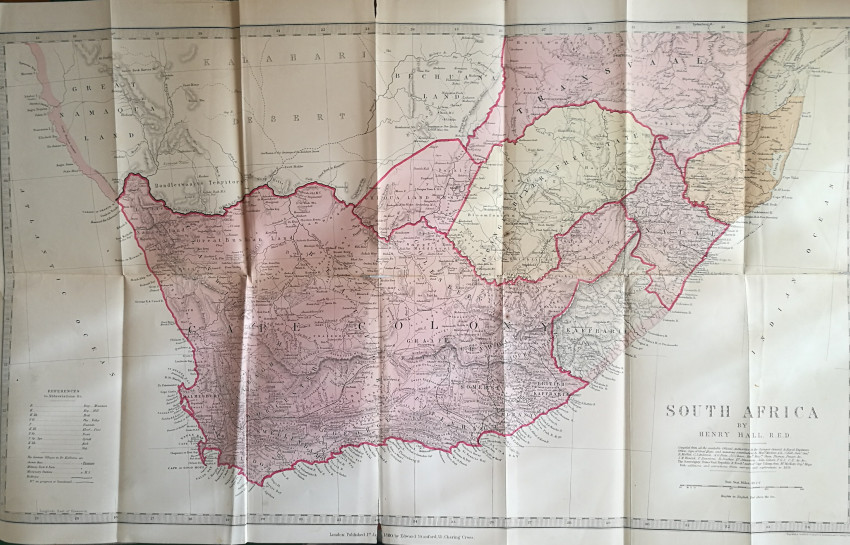 Brown cloth-boards, gilt lettered to the spine, plain endpapers, viii/491 pp + 24 pp of publisher's announcements + large folding colour map at the back