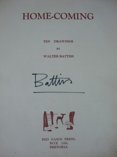 The title page is prominently signed by the artist \'Battiss.\' The foreword is signed by the artist with his initials.