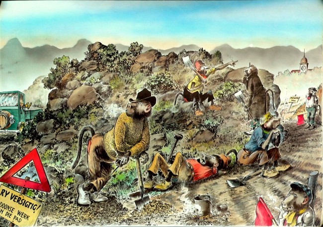 \"Creator of the Oom Kaspaas cartoons Thomas Ochse Honiball was born on 7 December 1905 in Cradock. He attended the Paul Roos Gimnasium in Stellenbosch and did drawings for the school magazine. He studied architecture at the University of Cape Town (until 1926). In 1927 he continued to study commercial art in Chicago, where he was introduced to American cartoons. On his return to Cape Town in 1930 he worked in advertising and later as freelance caricaturist and cartoonist. From 1936 he worked for Nasionale Pers newspapers and in 1941 took over from DC Boonzaier as political caricaturist.\"
