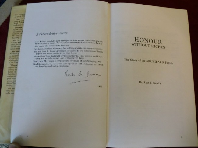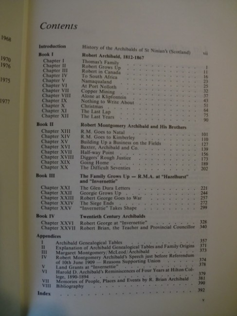 Book Condition: Very Good. Dust Jacket Condition: Very Good. First Edition. A very good first edition hard cover, binding is tight & strong, family tree chart complete in back of book. Dust-jacket is edge-creased with more wear to head of spine, and two tears, and not price-clipped, rubbed and chipped. Jacket now protected by a Brodart plastic sleeve. "From the colourful days of the Namaqualand copper boom where the first South African Robert Archibald looked for Eldorado, through the turbulent and exciting period when his son Robert Montgomery was caught up in the Kimberley diamond rush, and grew in stature to become the last Mr Speaker of the Natal Legislative assembly; into the twentieth century when Robert George Archibald was besieged in Ladysmith, involved in the Bambata Rebellion and became the dedicated architect of the family home at 'Invernettie'". For hiostorians and Africana collectors alike, this book should be both a pleasure and a source of lasting interest; (404pp.)