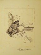 Each pen and ink drawing has been inset into a thick card leaf and elaborately bound in full crimson morocco with gilt decoration and titling on the upper cover and spine, the page edges are gilded. There is some light foxing on the drawings.