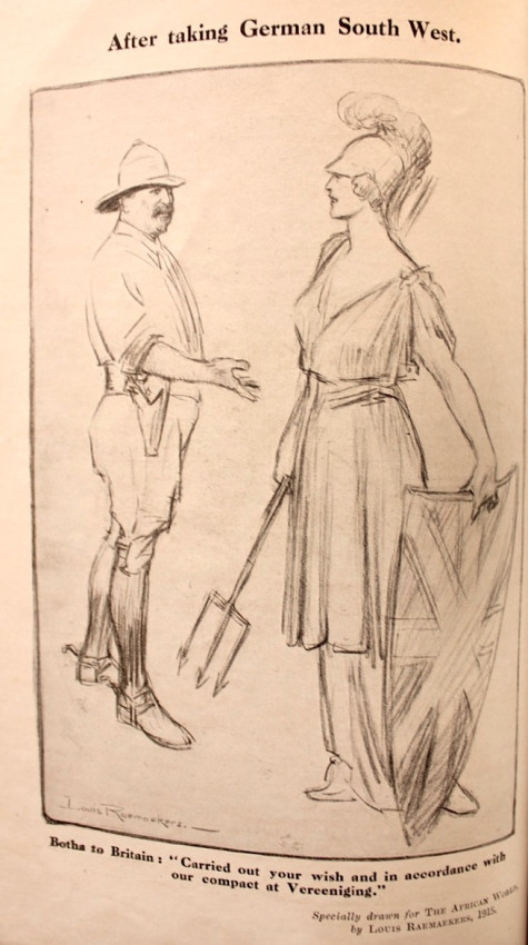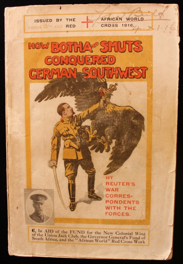 Publisher's pictorial softcover depicting General Louis Botha throttling the German Eagle on the front cover.