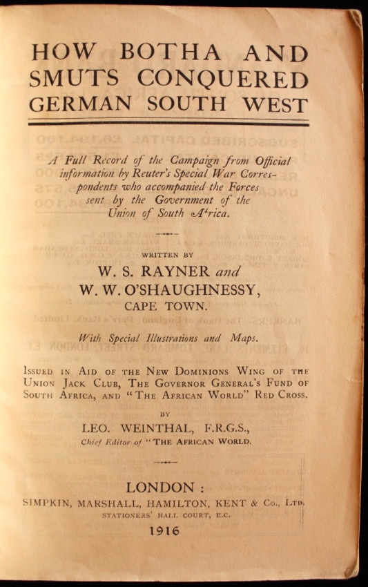 "How Botha and Smuts Conquered German South West. A Full Record of the Campaign from Official information by Reuter's Special War Correspondents who accompanied the Forces sent by the Government of the Union of South Africa."
