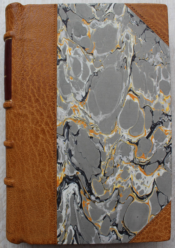 1896 first edition, rebound in half leather and marbled boards. With the title to the spine. 356 pages. Two library stamps on first and title page and one stamp on very last page. One stamp on page 174. Previous owner made some pencil notes on four pages. Now very attractive in the new leather.