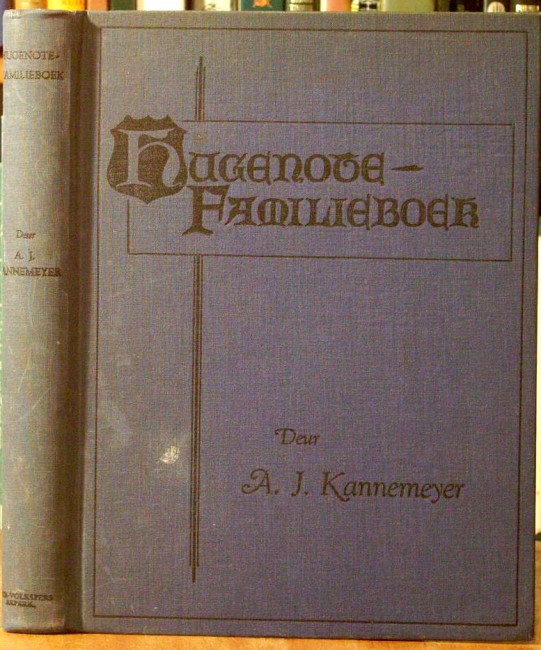 Important work on the Huguenot origins of some of the best known Afrikaans families. Afrikaans text. 282 pp with bw illustrations and coats of arms, in slightly marked and worn covers, some light foxing in prelims, otherwise good condition, no dustjacket, ownership on endpapers.