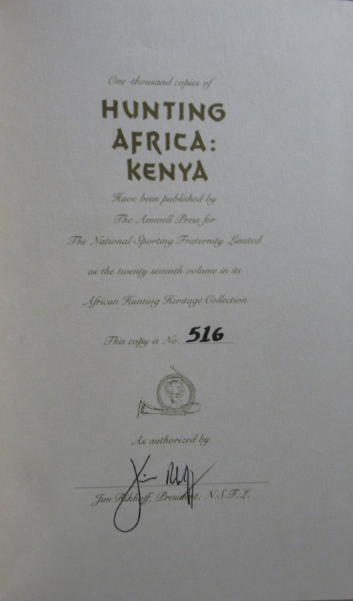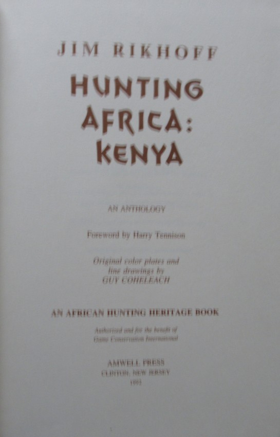This is the twenty-seventh volume in Amwell Press's African Hunting Heritage Collection. This is numbered 516 of 1000 copies. Signed by Jim Rikhoff.