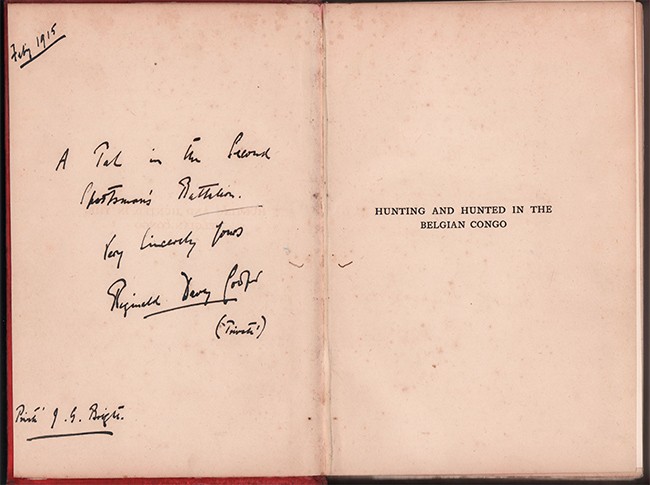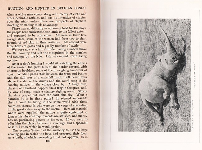 Czech (Kenneth) AN ANNOTATED BIBLIOGRAPHY OF AFRICAN BIG GAME HUNTING BOOKS 1785 -1999 Page 66: The author crossed the area north of Lake Albert, then into the Belgian Congo where he hunted elephant, rhino, hippos, hartebeest, bushbuck and other game in the Lado Enclave. There are especially interesting descriptions of encounters with cannibals, tramping through elephant grass and escaping an elephant stampede.