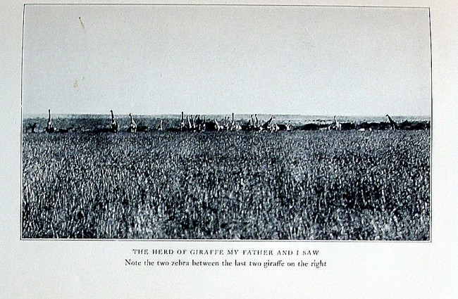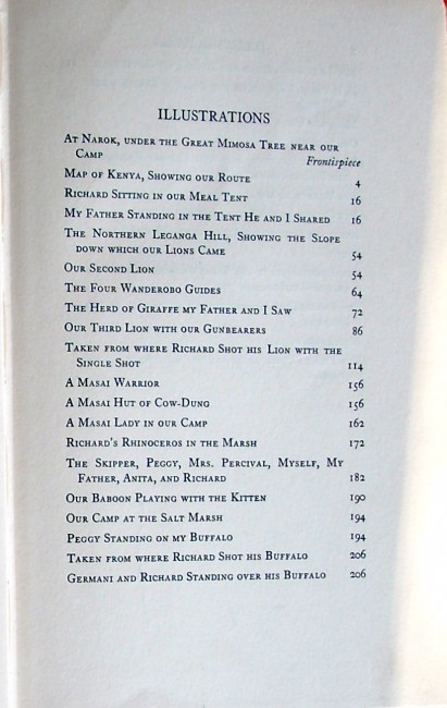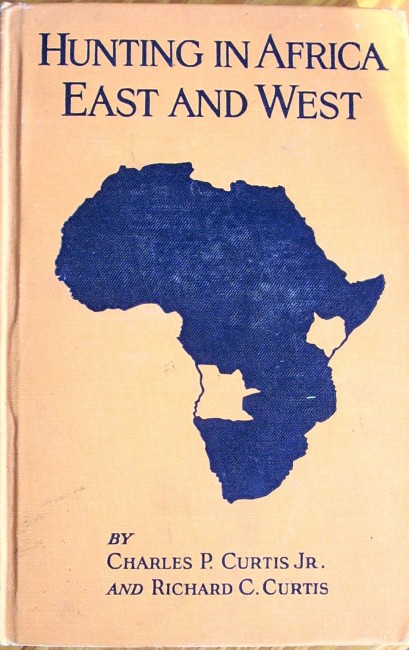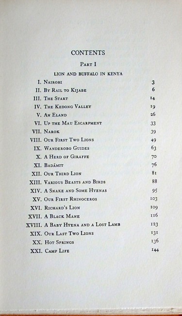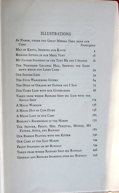 Houghton Mifflin, 1925, black lettering and Africa outline (with Kenya and Angola marked) on orange cloth boards, photographic illustration, part 1, lion and buffalo in Kenya, part 2, giant sable antelope in Angola, 155 x 230mm, condition: very good.