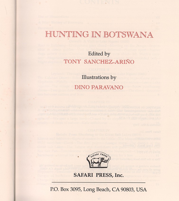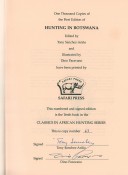 The limitations page reads: One thousand copies of the first edition have been printed. This numbered and signed edition is the tenth book in the Classics in African Hunting Series. This is copy number 63 signed by the author and the illustrator.