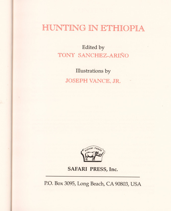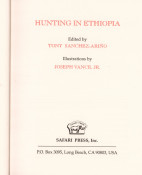 Czech (Kenneth) An Annotated Bibliography of African Big Game Hunting Books 1785 -1999, page 244 -245: An anthology of hunting stories on all manner of game in Ethiopia including elephant, wallia ibex, lions etc., mostly culled from famous books by Samuel Baker, Alfred Neumann, and others, but also more modern less well known stories by the likes of John Brandt, Craig Boddington, Brian Duckworh, Rudolph sand, Peter Capstick etc.