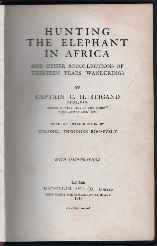 Introduction by Theodore Roosevelt. Chauncey Hugh Stigand was born in France in 1877 while his father was the British Consul there. He demonstrated early academic talents and was exposed to the maturing benefits of foreign travel at a youthful age. His cultured family background influenced the shaping of his career. He opted for the Army and obtained a commission. Later career moves provided considerable opportunities for hunting in East Africa and the Lado Enclave. He wrote many other titles on his experiences in Africa.