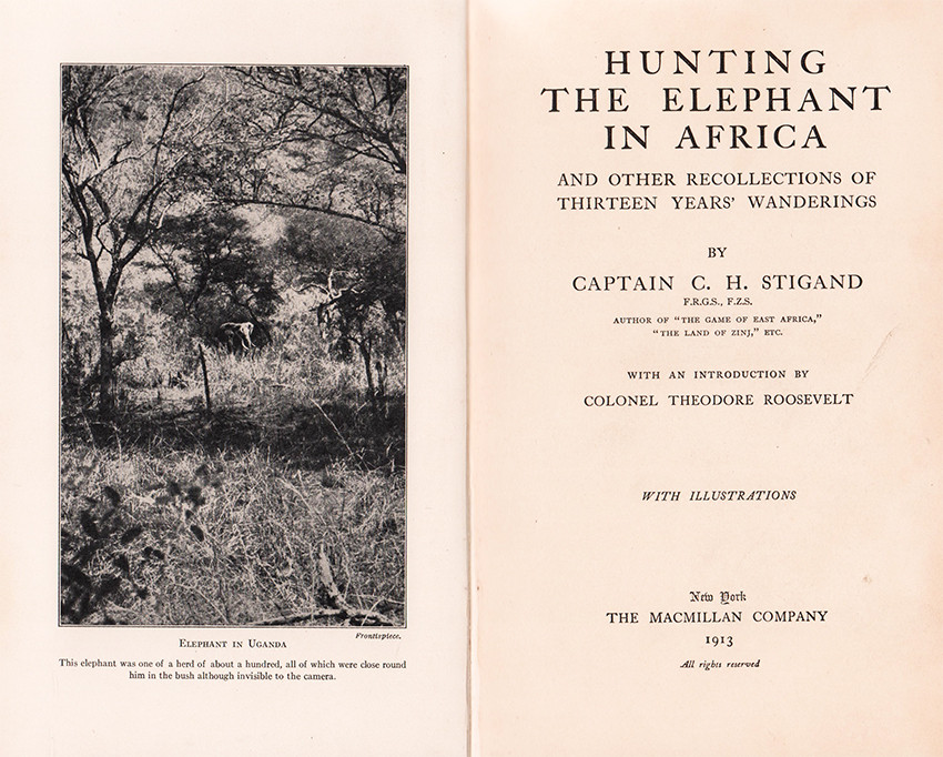 Czech (Dr. Kenneth) An Annotated Bibliography of African Big Game Hunting Books 1785 – 1999, page 269: 'A pre-eminent elephant hunting title, this details Stigand's big game hunting efforts primarily in British East Africa, North Eastern Rhodesia, Nyasaland and the Lado Enclave. He includes chapters on hunting rhinoceros, buffalo and lion, but related his encounters with elephants with particular verve. As he states in Chapter 1: "There is something so fascinating and absorbing about elephant hunting that those who have done much of it can seldom take any interest again in any other form of sport."