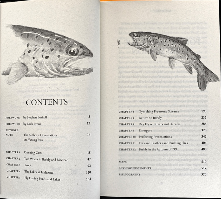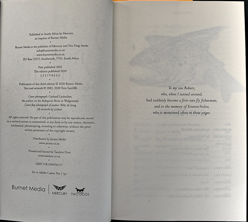 I have gone for a redesigned cover crafted quite brilliantly by Sean Robertson of Burnet Media from a photograph by Gerhard Laubscher of the Bokspruit River in the Eastern Cape Highlands. There's an added piece of text in which I described how I came to write Hunting Trout in the first place, how Ed Herbst influenced many chapters especially through his eccentricities in packing and travel, and there's a new foreword by Steve Boshoff. Nick Lyon's first foreword has been retained. Much of the artwork has been redone with many new pieces added, including a study of the old cottage on Heatherdon from which we would leave to fish the famous Old Dam.' Tom Sutcliffe