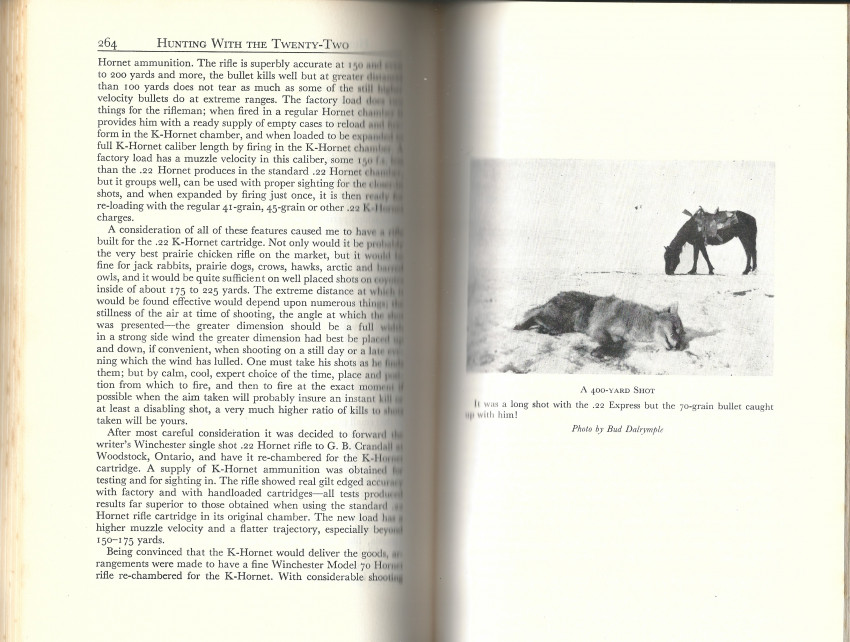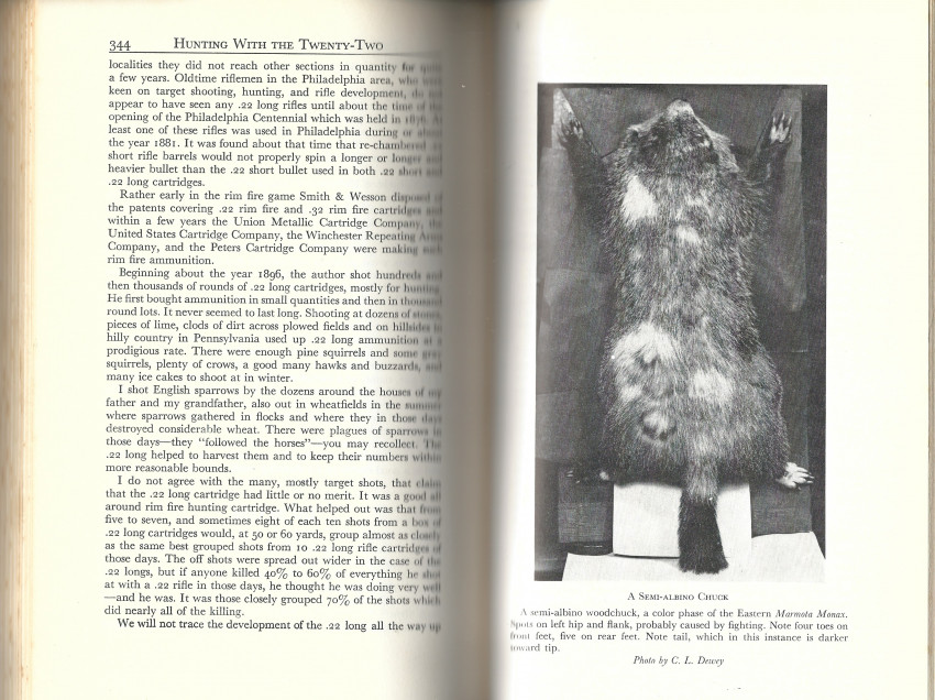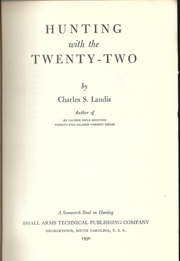 "This book is devoted exclusively to the increasingly popular .22 caliber "wildcat" rifles and their ammunition. Everything from the rebuilt single shot action to the most elaborate custom built center fire bolt action, good for 200 to 400 yard work on turkeys, woodchucks, crows, hawks, coyotes and wolves, bears, is treated in this extensive work. Here for the first time, is presented full and correct technical information on the assembly, adjustment and finishing of most of the leading popular wildcat .22s of the day."