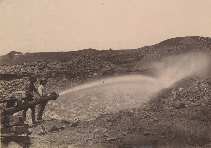 Hydraulic Mining, Lydenberg Gold Mine. c1890. Autotype print. Excellent contrast and tonality.
