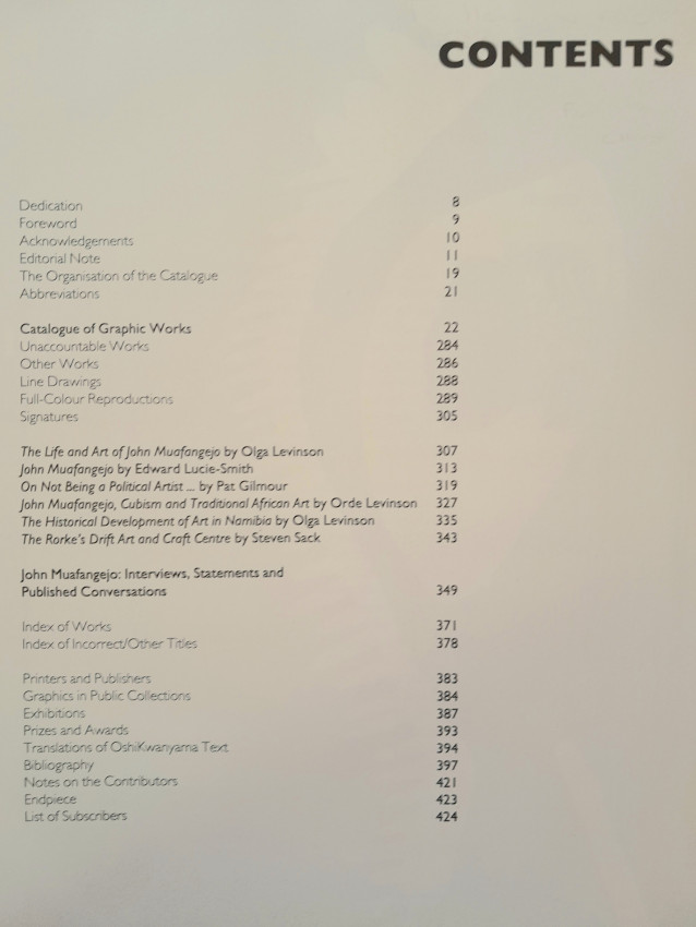 A Catalogue Raisonné 1968-1987. Illustrating all 262 of Muafangejo’s known graphic works, each produced on a separate page and accompanied by full and precise documentation. Includes detailed and comprehensive indexes at the end of the book.