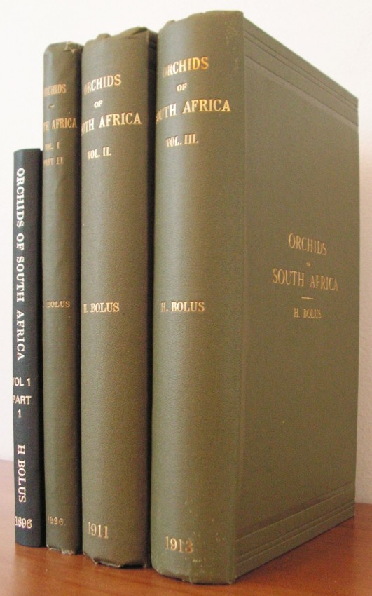 "It was about the time of his first trip to Kew that Bolus began to take a special interest in the Orchidaceae. Although several other botanical interests took up much of his time, he retained a particular interest in orchids until his death. His first publications on Orchidaceae appeared in 1882, when, besides his 'Notes on some Cape orchids', he published 'A list of published species of Cape orchideae', prepared largely during a visit to Kew in 1881. He published The orchids of the Cape Peninsula in 1888, many of the 102 species which he described being illustrated with partly-coloured plates, which he prepared himself.