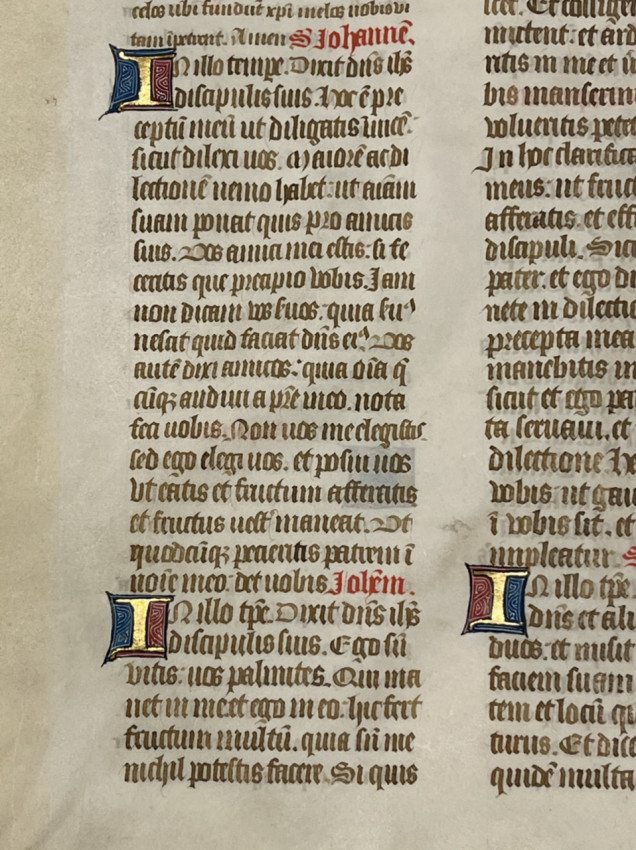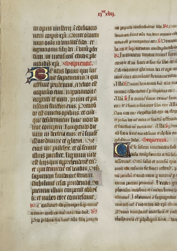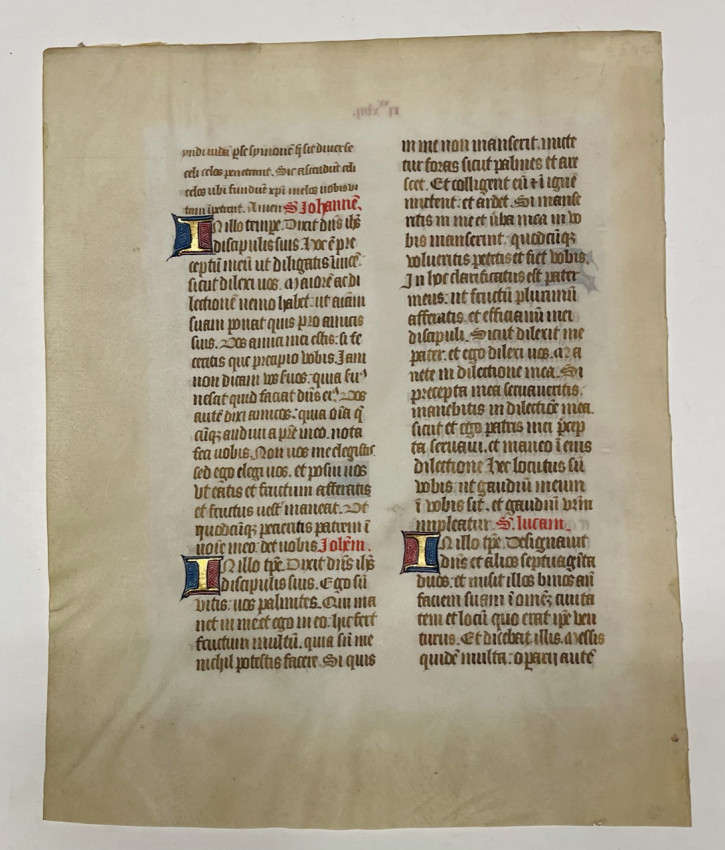 A double-sided, double-columned manuscript leaf from a Lectio Divina (Latin for "Divine Reading"), a traditional monastic practice of selecting scriptural readings.