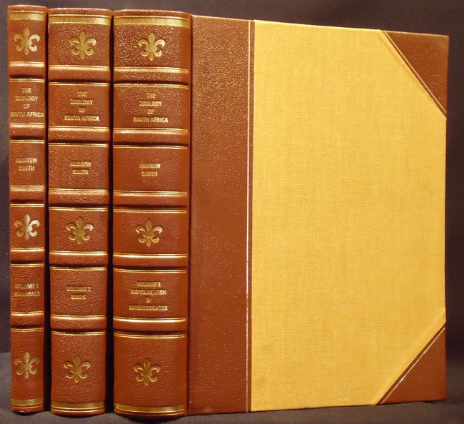 Kirby (P.) Sir Andrew Smith's Zoology, A re-examination of the facts relating to its publications. Africana Notes & News, volume II, no. I. December 1944, pages 3-15. 'Andrew Smith from the moment of his arrival in South Africa in 1821, interested himself in the natural history of the sub-continent. He began immediately to collect and to preserve specimens, and to publish descriptions of them wherever possible, both in South Africa and overseas. He founded the South African Museum in June, 1825, and issued the first part of a descriptive catalogue of some of the contents in 1826. He published in "The South African Commercial Advertiser" a series of articles which were intended to give in outline the zoology of South Africa, and he was the leading spirit in the founding of the first scientific paper to be published in the country, "The South African Quarterly Journal", to which he contributed many valuable ornithological notes. He went on quite a number of scientific expeditions during his stay in South Africa, but it was his great expedition of 1834-1836 that supplied the bulk of the material for his classic work on South African Zoology.' A prospectus was issued for the publication. 'The Work will appear in periodical parts, price ten shillings each; and it is estimated that it will be completed in about thirty-four parts. As it will be necessary that the plates be published promiscuously, they will be arranged in five divisions, viz., MAMMALIA, AVES, PISCES, REPTILIA and INVERTEBRATAE. The plates of each of these divisions will be numbered independently, and the letter-press descriptions left unpaginated, so that on the work being completed, they may be arranged either agreeably to the general classified order which will accompany the last number or according to the particular views of the purchaser.'