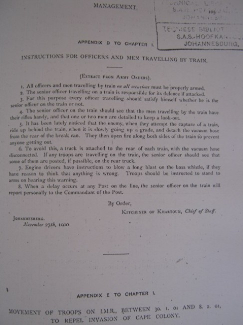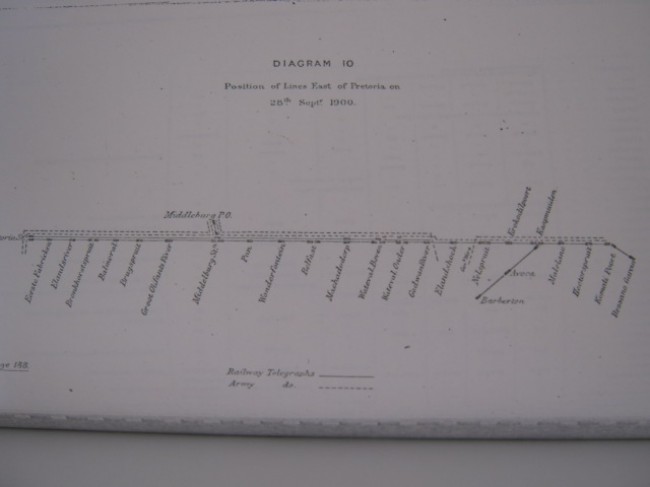 The contents provide useful historical information, including many diagrams and a fold-out schedule on railway systems and operations from the British military side during the Anglo-Boer War.