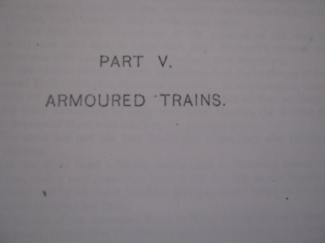 This is a plain green Skivertex-board binder containing photostat copies of pp 75-255 from an unknown book from \"the research library of the South African Railways\". The pages include Chapter IV \"Imperial Railways\" and Chapter V \"Armoured Trains\".