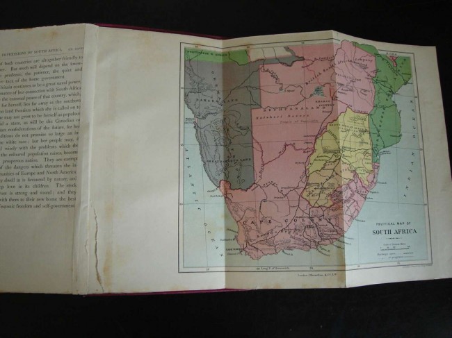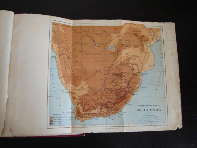 Red cloth-covered boards, gilt titles on spine. Boards edge-rubbed, pitted, stained in places, some small cracks on spine edges, 1cm tear on back fold at upper spine. Pages edge-spotted and rough cut, but after the prelim pages, no obvious signs of foxing. Map edges worn and discoloured. Page 599/600 facing the maps has been repaired at some stage, and map inner edges have some tears showing usage wear, although the maps themselves are clean and whole. Book is in better shape than it sounds - generally good condition.