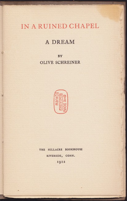 Colophon reads: This Edition of In a Ruined Chapel consists of 1000 copies, printed at Hillacre, Riverside, Connecticut.
