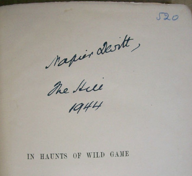 This book has the purple ownership stamp of Orlando Paes. Many in the hunting fraternity need no introduction to the Mamede family of professional big game hunters. The \"Orlando Paes\" stamp also occurs on the last page. The front paste down has the book plate of Charles Theodore Holland. Napier Devitt\'s name in pen on the half title. Devitt was the author of Africana interest books. Rowland Ward label on front paste down.