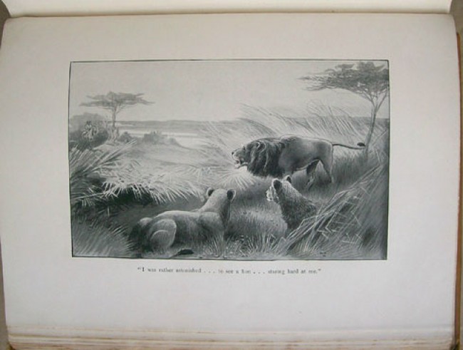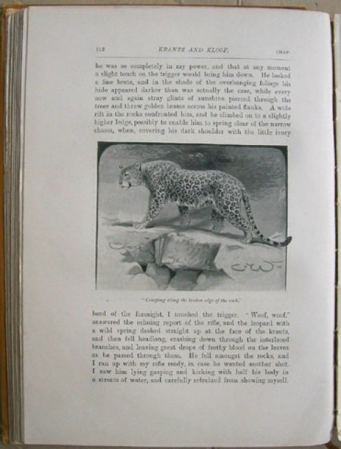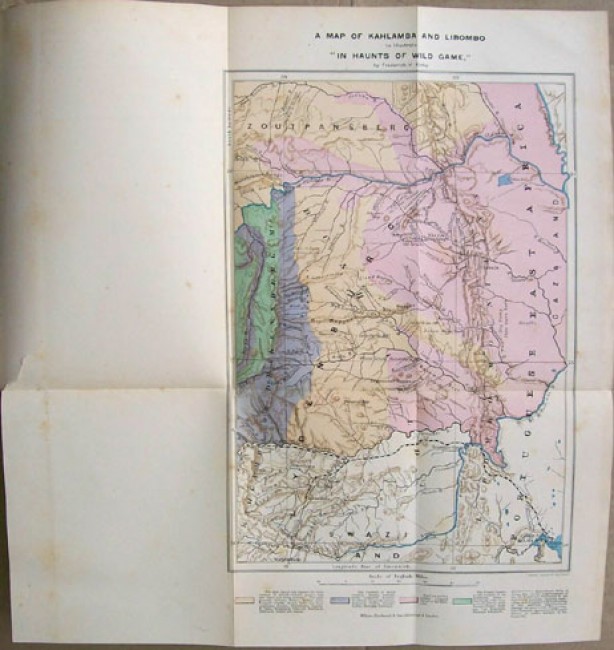 CONDITION DETAILS: The binding is worn. The cloth at the head of the spine has tears and at the bottom of the spine there is some loss of surface. The picture of a leopard on the upper board is no longer clear and bright. Some soiling, with bumped and frayed corners. Internally a few soil marks, but reasonably clean internally. The folding map has some foxing, but the face of the map itself is clean.