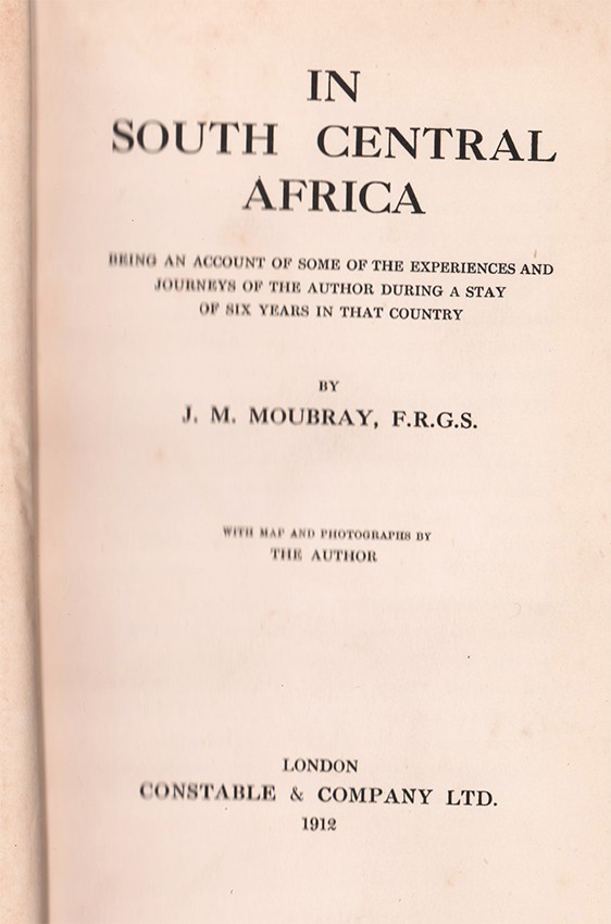Czech (Kenneth) An Annotated Bibliography of African Big Game Hunting Books, 1785 to 1999, page 204: A mining engineer, Moubray’s six years in the region were from 1903-08. While much of his narrative revolves around his non-sporting experiences, he does find time for jaunts along the Upper Kafue River after hippo, roan, eland and wildebeest. Near Kashiwa Lake, he hunted buffalo, lion and elephant. 'Big game shooting is certainly very fascinating for a little while, but the novelty soon wears off….There is always a certain amount of fun, however, with such animals as buffalo, elephant and lion.'