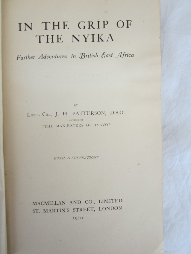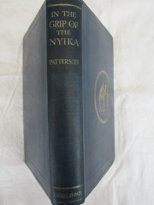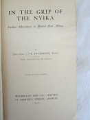 Czech page 214 - "Patterson revisits the infamous sites of Tsavo, then treks into the nyika of British East Africa. Near the Karusi River, he bagged bushbuck, eland and kudu, and had numerous encounters with lions. There is a feverish encounter with a rogue elephant that kills Aladdin, Patterson's steed."