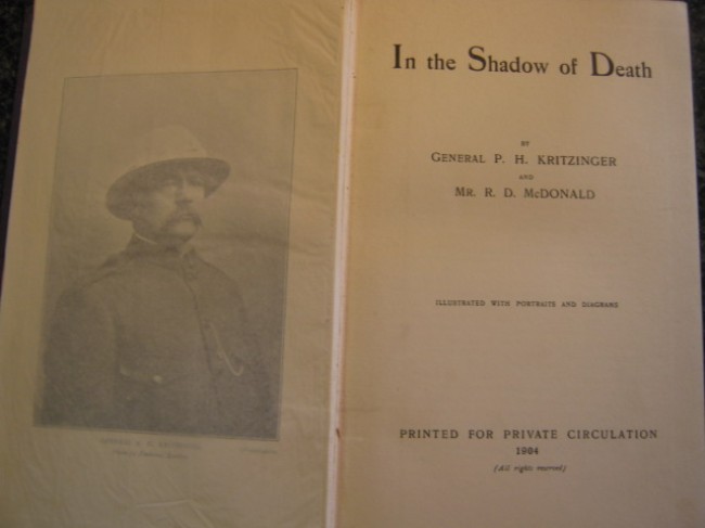 vii + 178 pp of text + frontispiece and seven plates: two of the authors; "an interesting group" [of 10] including Commandant Wessels and Lieutenant Troskie; General de Wet; ex-President Steyn; and two of Commandants Theron and Fouche.