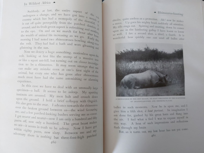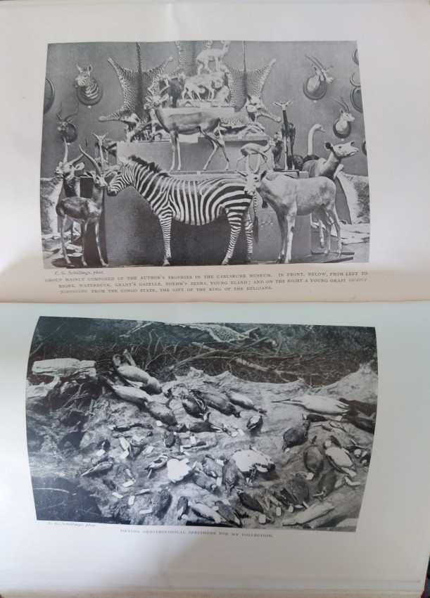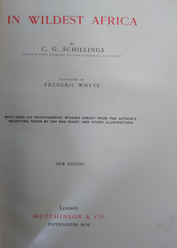 Published by Harper & Bros., New York & London, 1907 1st edition (in one volume), 1907. 16+716 pages, 300+ photographs from the author (taken by day & night) : a follow-up to "With Flashlight and Rifle" with further hunting adventures in East Africa and a plea to take "active steps to prevent the complete extermination of wild life"; hardback, brown cloth, eps a little browned, very good plus in original brown boards with circular elephant crest to front cover.