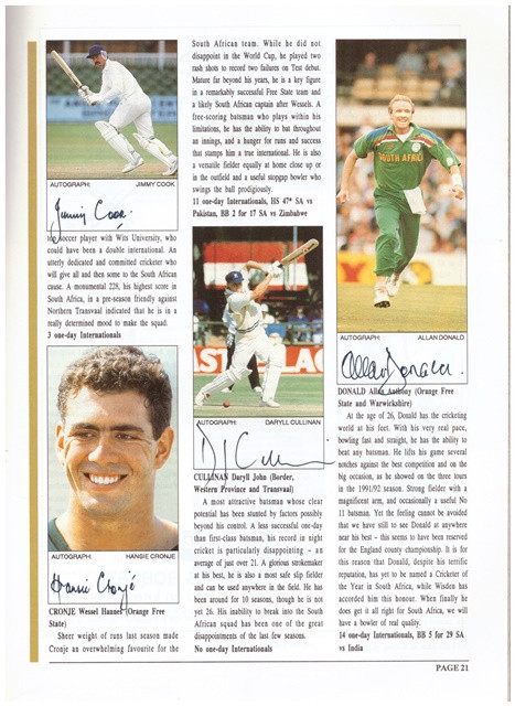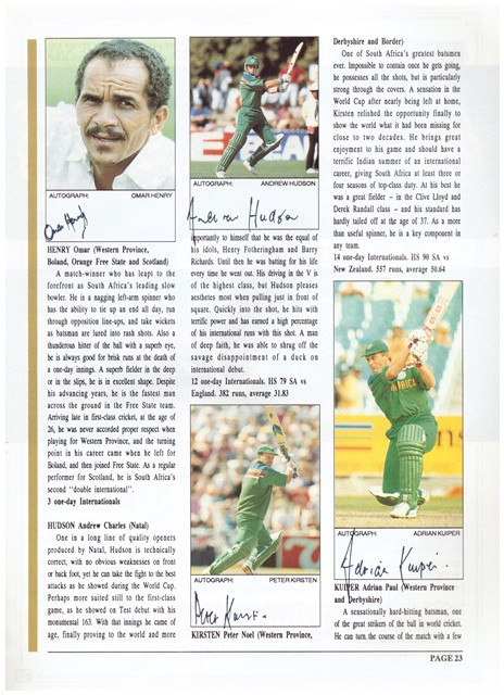 64 pages: illustrations (mainly colour), portraits (colour). Quarto. Stiff paper wraps. Sixteen of the South African players have signed below their portraits.