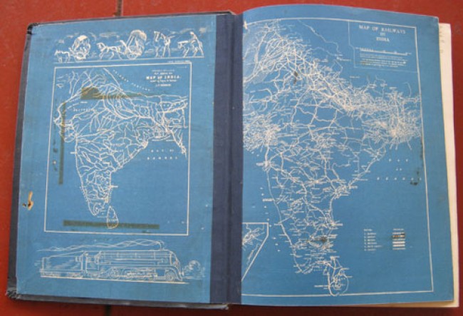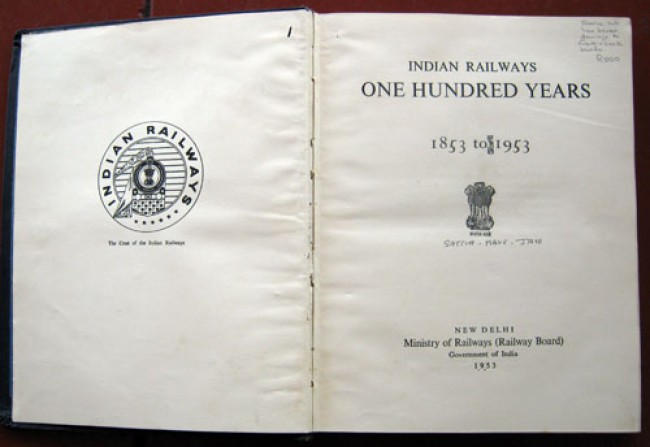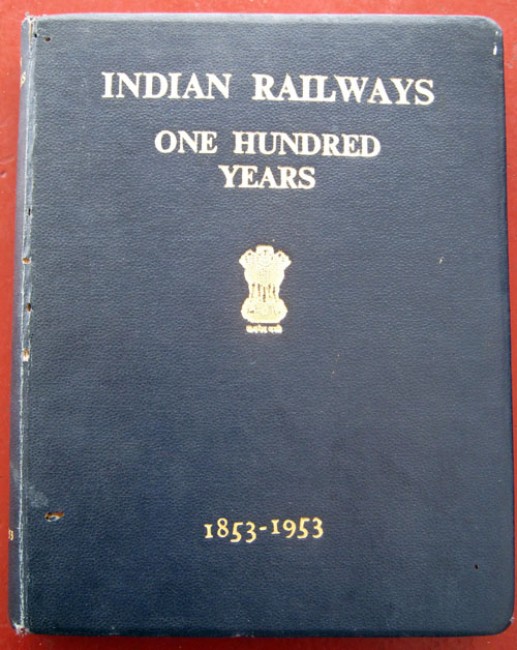 200p. Black and white photographs, including railway stations. Maps as endpapers. Name on title page. Black boards with gilt lettering. There is some insect damage to boards, and some of the rear pages. Hinges have been strengthened with cloth tape. Sellotape residue on endpapers. Occasional foxing. Looks at the history, construction, architecture of Indian Railways.