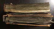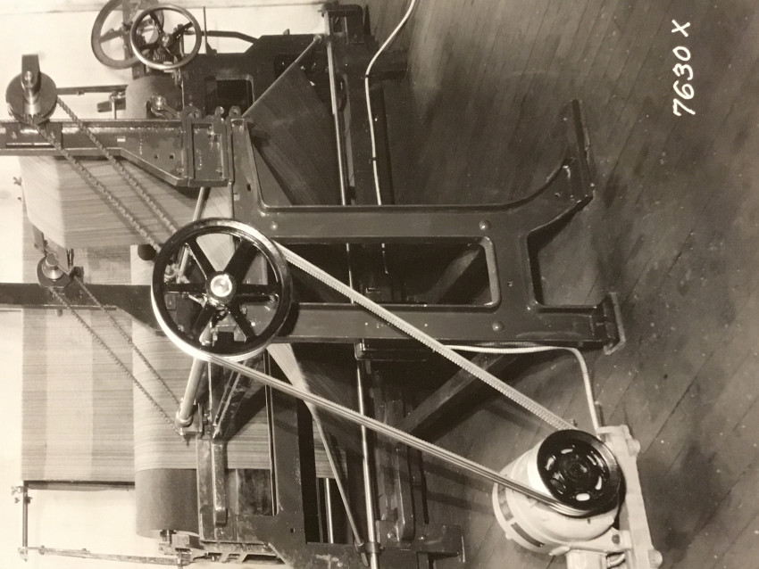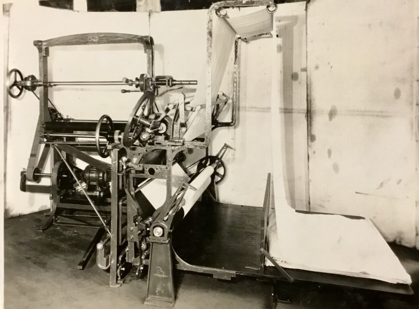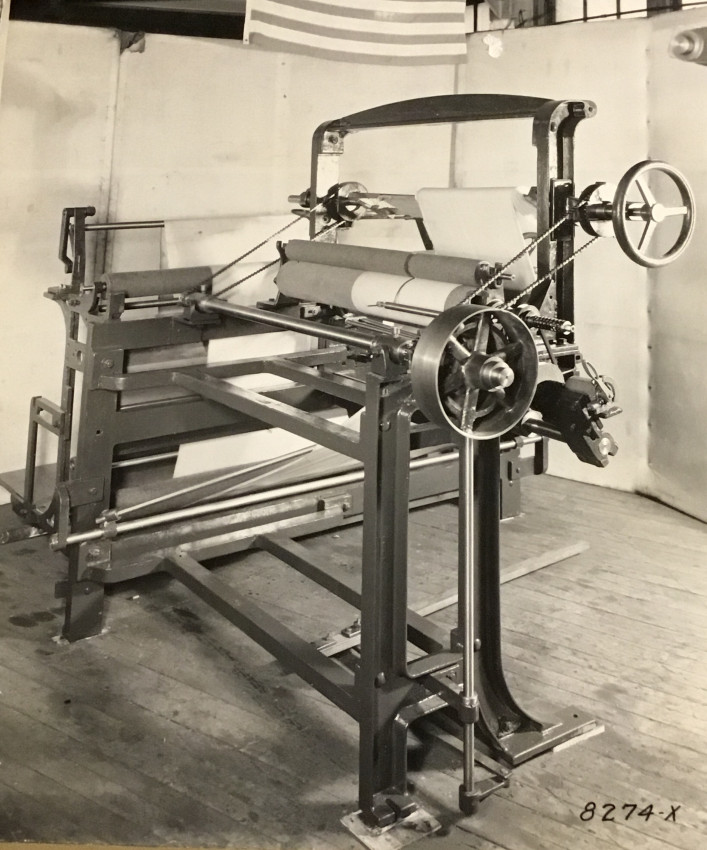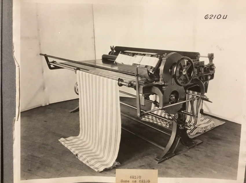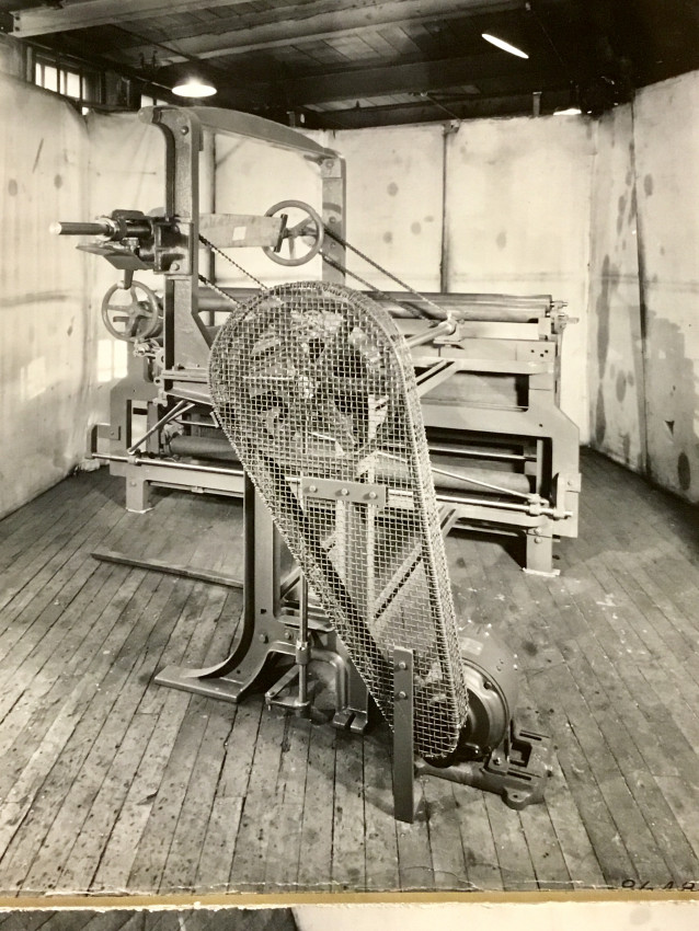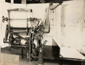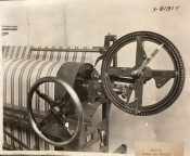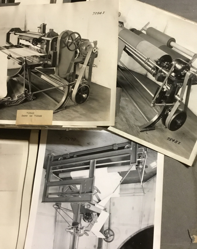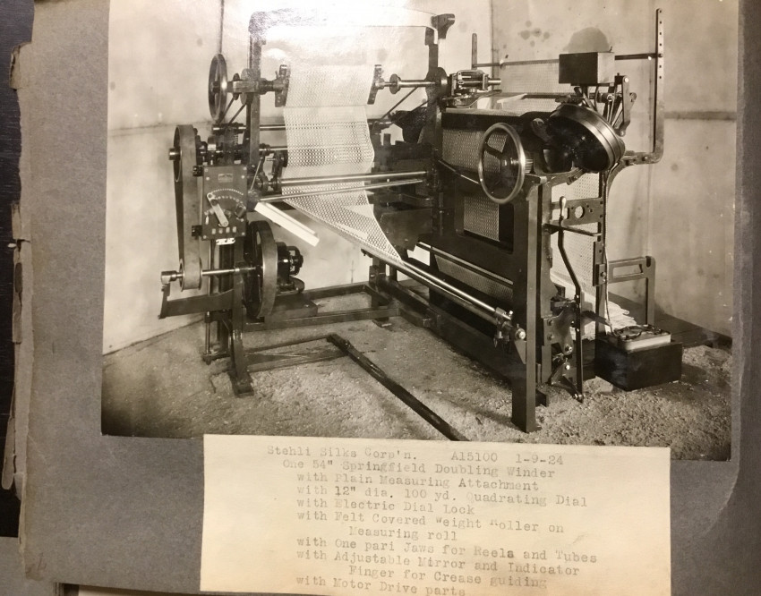 2 albums containing over 200 images of textile machinery ca. 1920s, presumably Massachusetts and nearby. Companies mentioned include W. S. Libbey, Monson Worsted, Lyons Piece Dye Works, Stehli Silks Corp., Expert Cloth Sponging, Packard Mills, Whittenton Mf'g Co., Michaels-Stern & Co., etc. All approx 8 x 10 inch silver prints with stock numbers in negatives, all mounted, a few coming loose from mounts, albums in poor condition, some photographs loose, covers detached; photographs generally very good.