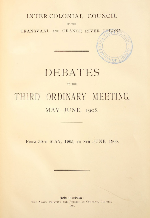 Contents clean with single Johannesburg Town Council Library stamp on title pages.