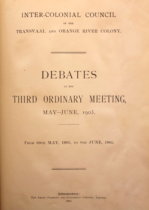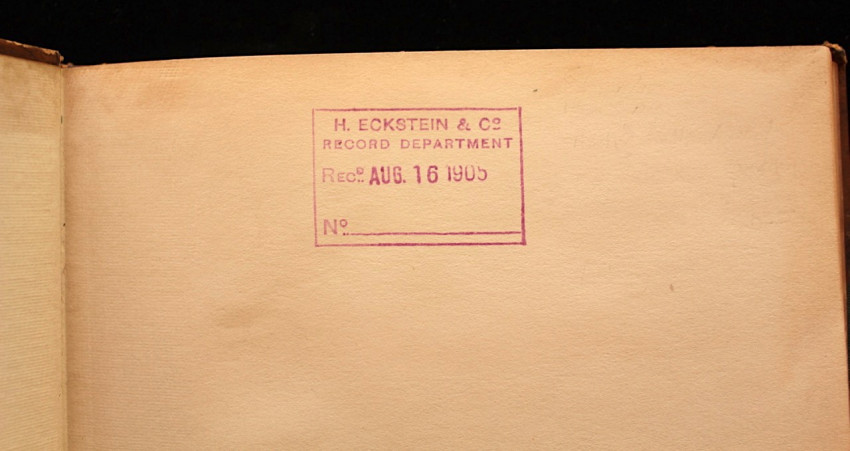 Contents clean with a stamp on front endpaper indicating that this copy came from the Records Dept. of early Johannesburg mining magnate and Randlord Hermann Eckstein.