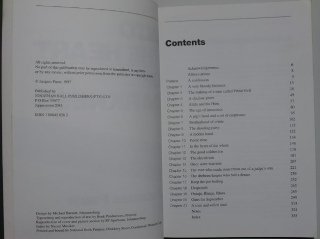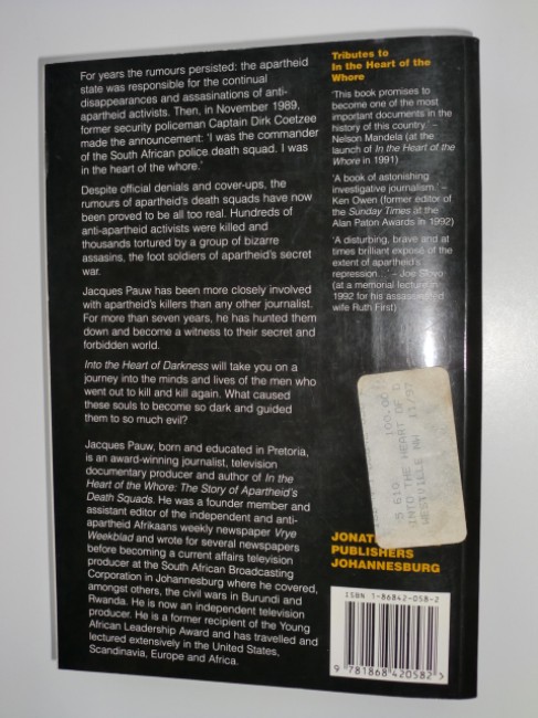 Condition: very good condition, single vertical spine crease, page edges slightly grubby, corners lightly bumped, contents very good. In November 1989 former security policeman Capt Dirk Coetzee made the announcement: 'I was the commander of the South African Police death squad. I was in the heart of the whore.'