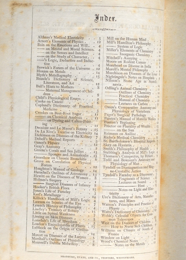 Original maroon cloth with title in gilt on spine, brown end pages. xiv + 110 + 5 leaves of plates including one fold-out Plan of Lying in Institution + 15 pages of advertisements + index.
