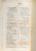 Binding tight, boards and spine soiled and discolored, corners bumped with minimal loss, scattered light foxing on first and last pages with heavy foxing on index page, fold-out plan creased at one fold.