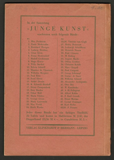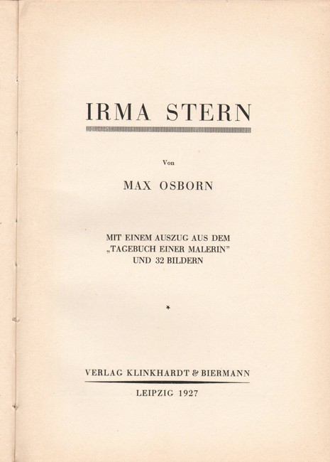 The first book on Irma Stern's work published in the Junge Kunst series of more than fifty small monographs published between 1919 and 1931 and which included many well known artists of the period such as Picasso, Kandinsky and Edwin Scharff.